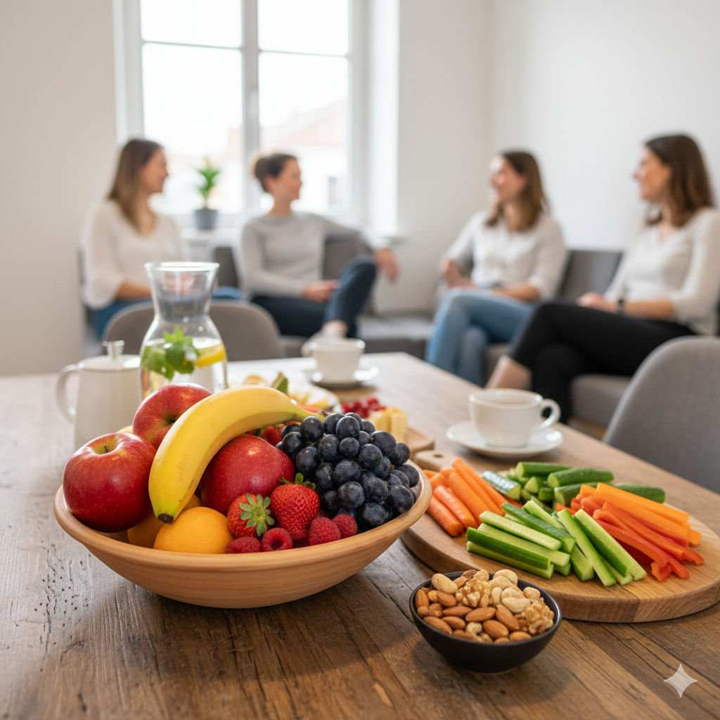 In der PVE Wien West beraten wir täglich Patientinnen und Patienten zum Thema Gesundheit. Wir möchten diese Werte auch intern leben. Eine ausgewogene Zwischenmahlzeit hilft, das "Nachmittagsloch" zu vermeiden, stärkt das Immunsystem und sorgt für gute Laune im Team.